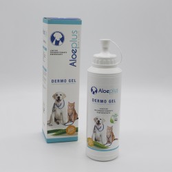 Dermo Gel Aloeplus per cani e gatti, lenitivo e decongestionante in caso di dolori articolari, tumefazioni, tendiniti, pruriti cutanei e punture di insetti.