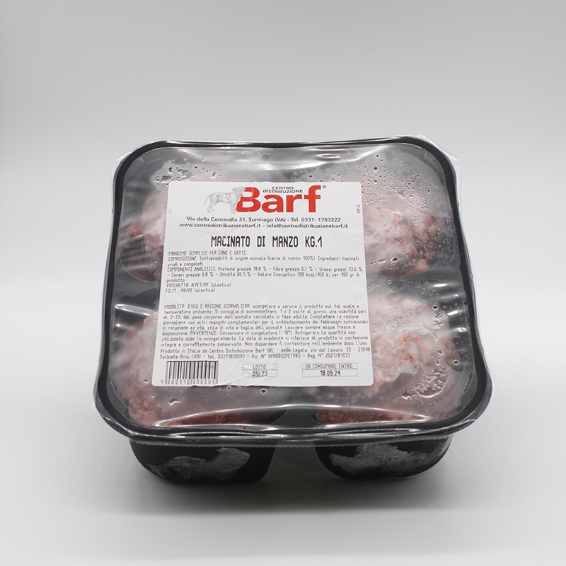 Il Macinato di Manzo da 1 kg è una fonte proteica di alta qualità, ideale per un’alimentazione naturale e bilanciata per il tuo cane o gatto. Perfetto per chi segue la Dieta BARF, fornisce nutrienti essenziali per la salute e il benessere di cani e gatti.