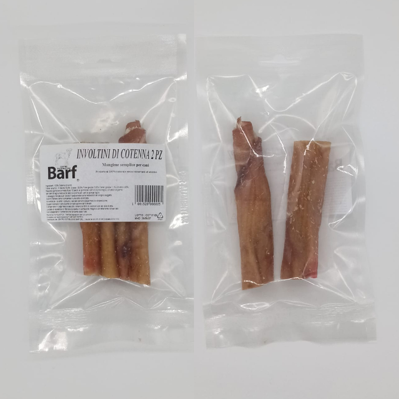 Gli involtini di cotenna per cani sono uno snack naturale e gustoso, ideale per soddisfare il bisogno di masticazione del tuo cane. Realizzati al 100% in pelle di suino essiccata, senza additivi né conservanti, favoriscono la pulizia dei denti e contribuiscono al benessere orale. Perfetti come premio quotidiano o passatempo sano, sono adatti a cani di tutte le taglie.