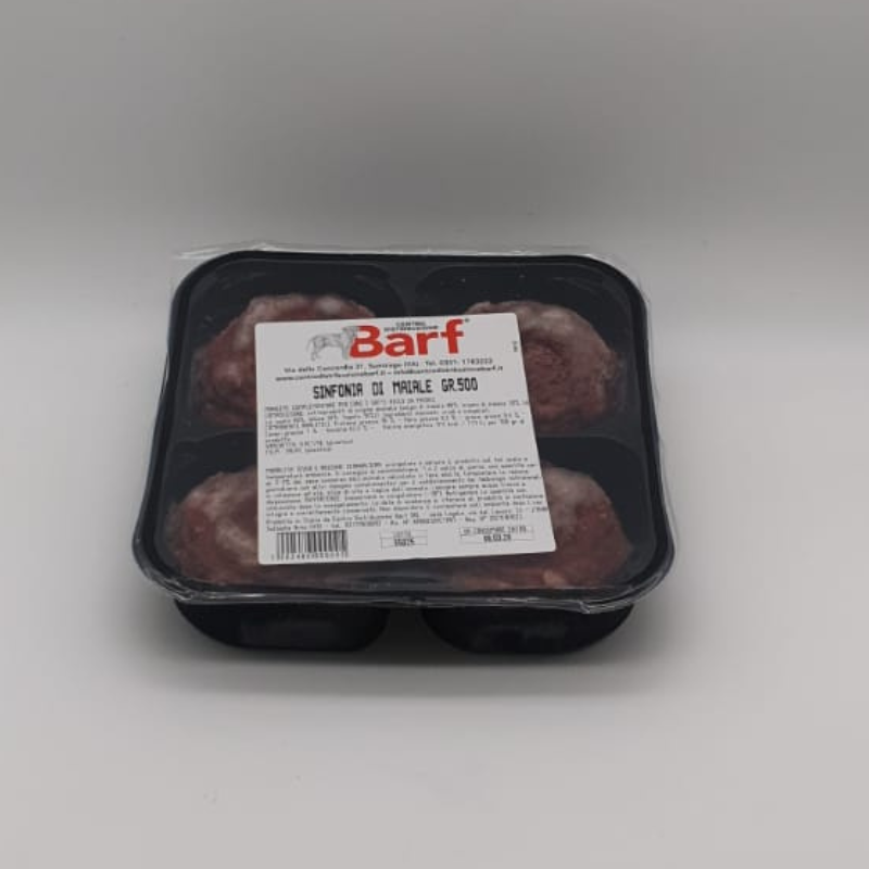 Sinfonia di maiale da 500g è un alimento naturale a base di carne di maiale, pensato per chi segue la Dieta BARF e desidera offrire un pasto sano, completo e gustoso al proprio cane o gatto.