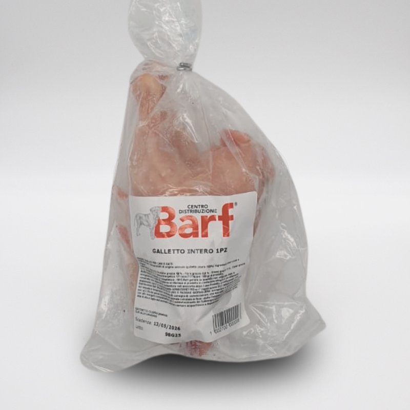 Il Galletto Intero è un alimento naturale, crudo e completo ideale per cani e gatti che seguono la Dieta BARF o un’alimentazione ispirata alla natura.